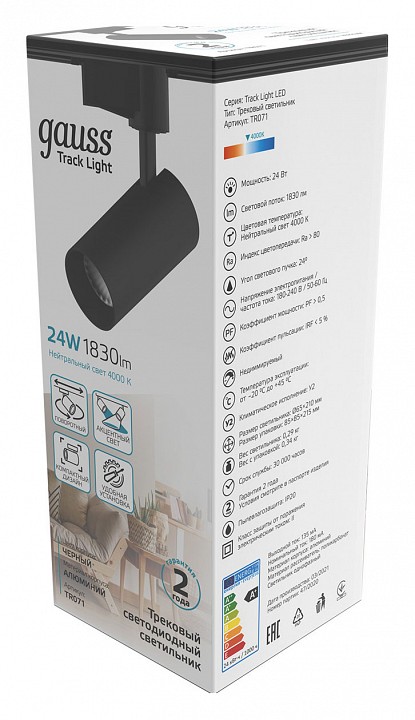 - Дополнительные параметры поворотный светильник, однофазная система