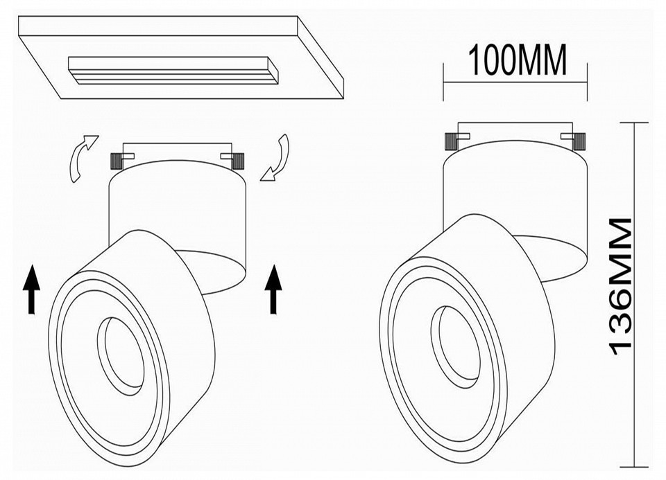 - Дополнительные параметры поворотный светильник, однофазная система