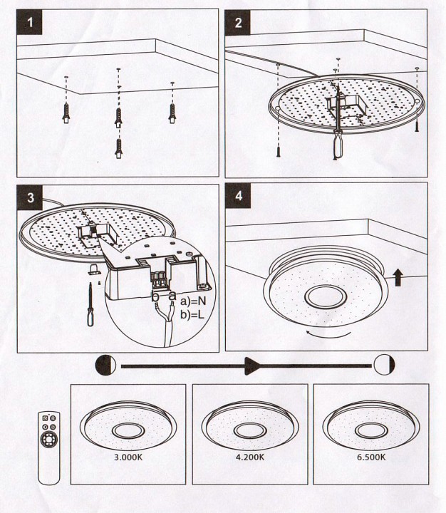 - Цветовая температура, K 3000, 4000, 6500
